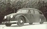 Модель презентували 4 березня 1934 на автосалоні у Празі одночасно з початком серійного виробництва. Модель була низькою без вихлопної труби і тунелю карданного валу в салоні. Вертикальний кіль ззаду кузова повинен був поліпшити стабільність руху на прямих відрізках дороги. На моделі встановили мотор V8 повітряного охолодження об'ємом 2969 см³ (75×84 мм), верхнім розподільчим валом потужність 60 к.с. (44 кВт) при 3500 об/хв. На моделі стояла 4-ступінчаста коробка передач з синхронізаторами. Корпуси мотора, кп виготовляли з магнієвого сплаву. Всі колеса мали барабанні гальма. Швидкість досягала 145 км/год. До кінця року випустили 101 машину.