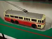 Система керування ТЕД — автоматична реостатно-контакторна; процесом комутації пуско-гальмівних опорів керує спеціальний апарат, що зветься груповий реостатний контролер, що приводиться у дію від низьковольтного електродвигуна. Пуско-гальмівні реостати обмежують силу струму, що проходить через обмотки електродвигуна, так регулюється частота обертання ротора електродвигуна і крутний момент, що він розвиває, і відповідно сама швидкість руху тролейбуса. Блок з пускогальмівними реостатами знаходиться під підлогою тролейбуса, а контакторна панель знаходиться у передньому звісі під обшивкою передка. Система керування тяговим двигуном виконана фірмою ČKD, Прага.