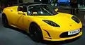 Tesla Roadster, перший автомобіль компанії, — це перший серійний автомобіль, що використовує літій-іонні акумуляторні батареї й перший серійний електромобіль із запасом ходу понад 200 миль (320 км) на одній зарядці. Спортивна модель розганяється від 0 до 60 миль/год (97 км /год) за 3,7 секунди і, відповідно до екологічного аналізу Tesla Motors, є вдвічі енергоефективнішою за Toyota Prius. Починаючи з 2008 року до березня 2012 Tesla Motors було продано понад 2250 родстерів у 31 країні.