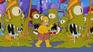Канг і Кодос демонструють планету Сімпсонам у гігантській клітці для домашніх тварин. Після чого їх ув’язненюють у зоопарку. Через деякий час їм повідомляють, що вони повинні вибрати одного з них, щоб повечеряти в ритуалі. Всі голосують за Гомера (навіть він, побачивши інші голоси, замінює свій голос на свою «користь»).
