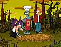 - У розмові з Заппом Бренніґаном Ліла називає Фрая і Бендера «Ту́пиком» і «Ду́рником». Згодом Запп саме так до них і звертається.