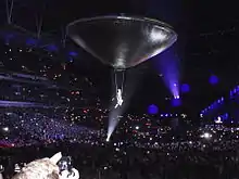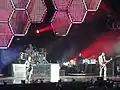 | Там буде добре використання відео.Ми будемо знаходитись на великих LED-конструкціях, тому ми всі будемо рухатися вгору і вниз на різних рівнях і грати досить високо в повітрі, що є тим, що ми ніколи не робили. Ми будемо на цих плаваючих кубиках відео *маніакально сміється*. Індивідуальні куби, все пересуватиметься навкруги. Вони схожі на масивні вежі, і їх три з великою кількістю відео.[...] Я думаю, ми зробимо кілька шоу, де шанувальники будуть навколо нас. Не в середині залу, але ми створили сцену таким чином, щоб натовп міг встати навколо нас. Кожен буде мати чудове поле зору і подивитися все шоу, навіть якщо сидітиме позаду нас, а не тільки потилиці. Там буде багато того, що обертається навколо і всяке таке. [...] Більшість наших ідей знищується з міркувань здоров'я і безпеки, і це починається набагато амбіційніше, ніж закінчується, але ми завжди намагаємося проштовхнути його до меж законів. Оригінальний текст (англ.) There's going to be some good video usage. We're going to be on some big moving LED structures, so we're all going to be moving up and down at different levels and actually playing quite high up in the air, which is something we've never done. We're going to be on these floating cubes of video *laughs maniacally*. Individual cubes, all like moving around. They're like massive towers and there's three of them with lots of video. [...] I think we're going to be doing a few shows where we're going to have fans all around us. Not in the middle of the room but we've designed the stage in a way so that the crowd can fit all around us. Everyone's going to have a great view and get the whole show, even if you're sitting behind us, not just the back of our heads. There's going to be lots of spinning around and stuff like that. [...] Most of our ideas get shot down by health and safety and it starts out much more ambitious than it ends up being but we're always trying to push it to the limits of the laws.[5] |
