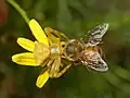 Thomisus onustus hunting Apis mellifera