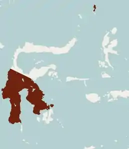 Цей вид поширений в центральній і південній частині острова Сулавесі та прилеглих островах. Він живе в лісах між 60 і 1930 метрів над рівнем моря.