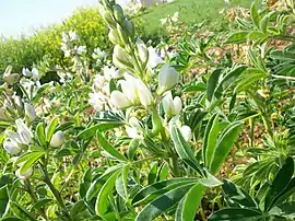 Стебла 15–50 см, прямовисні, іноді стелеться, зазвичай деревнисті. Листки 4–7 × 0,6–2 мм, лінійні або лінійно-ланцетні з волосками донизу, суцвіття щільні. Квіти кремові або білі. 2n = 58, 60. Цвіте з травня по червень. Горішки 0,9–1,1 × 0,5–0,7 мм, еліпсоїдні, коричневі.