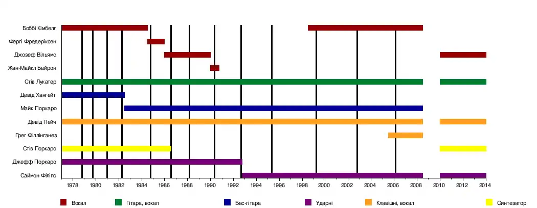 - Стів Лукатер — вокал, гітара, клавішні, мандоліна (1977—2008, 2010 — дотепер)
