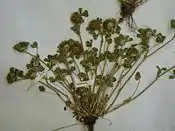 Це однорічна трав'яниста рослина, яка досягає висоти 5-20 сантиметрів. Густоволоса і тільки рідко розгалужені, пряма або сланка рослина. Листові фрагменти 5-15 мм, обернено-яйцеподібні. Суцвіття 15-20 мм в діаметрі, напівсферичні, сидячі й багатоквіткові. Окремі квіти довжиною від 0.8 до 1.2 сантиметрів. Пелюстка від білого до брудно-білого кольору, рідше червонувата. Насіння 1,4-2,2 мм, жовті.