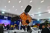 Макет військового розвідувального супутника Göktürk-2 на стенді TAI на виставці IDEF 2015