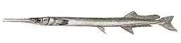 Риба до 1,2 м завдовжки. Тіло видовжене з довгою мордою із голкоподібними зубами. Полює на дрібну рибу. Може вночі нападати на світло ліхтаря смертельно ранячи людей.