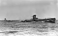| U-36 в морі в 1936 році: видно номер човна на ходовій рубці та корпусі. В подальшому, з наростанням напруги в бойових діях, він був стертий. | ||