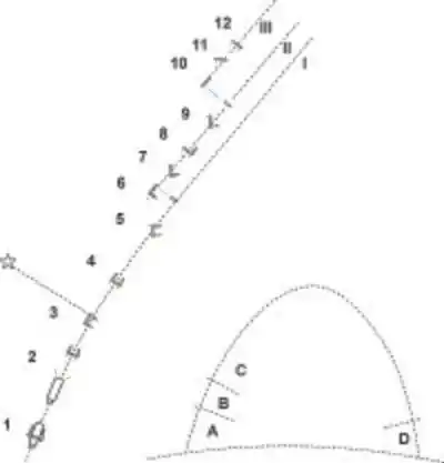 6 — відділення бойового блоку, включаючи бойову ступінь (умовно показано розташування блоку розведення на траєкторії польоту другого бойового блоку, насправді він виходить на неї протягом роботи на ділянці 8);
