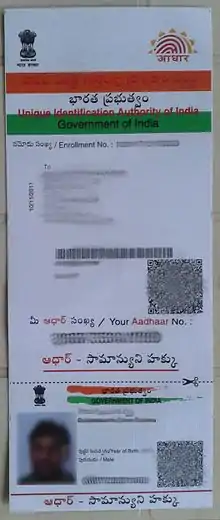 Код AADHAAR — унікальний ідентифікаційний номер з 12 цифр. Перші 11 цифр — автоматично сгенерований унікальний код, остання 12-а цифра — контрольна сума.