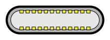 24-контактний роз'єм двостороннього типу C має майже такий же розмір, як Micro-B USB — 8,4 мм (0,33 дюйма) на 2,6 мм (0,10 дюйма).