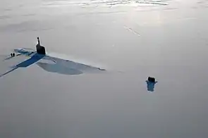 - The attack submarine USS Annapolis (SSN 760) rests in the Arctic Ocean.