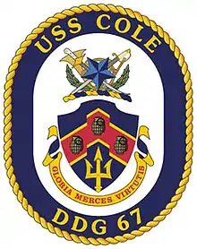Девізом корабля є латинський вираз «Gloria merces virtutis» («Слава — нагорода хороброго»), що підкреслює хоробрість і героїзм сержанта Даррела С. Коула і його вірність Сполученим Штатам Америки.[2]