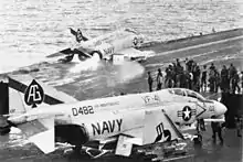 | Авіація | (на 1987 рік) 42 штурмовики A-6E 24 винищувачі F-14A 10 літаків ПЧО S-3A 4 літаки ДЛРС E-2B «Хокай» 4 літаки РЕБ EA-6B 4 заправники KA-6D 8 вертольотів ПЧО SH-3H | |