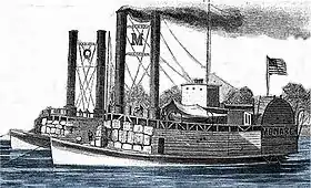 «Монарх» побудували як колісний буксир у Фултоні, штат Огайо, у 1853 році. Він затонув в річці Огайо в Луїсвіллі, штат Кентуккі, 5 березня 1861 року, але був піднятий і відремонтований. [1] Армія Сполучених Штатів придбала судно у Пітсбурзі, штат Пенсільванія, у квітні 1862 року для підтримки операцій армії Союзу і перетворила його на паровий таран у 1862 році для служби разом із Західною флотилією на річці Міссісіпі у складі Флотилії таранів Сполучених Штатів під керівництвом підполковника Чарльза Еллета-молодшого. Корабель підняв прапор у Піттсбурзі під командуванням капітана Р. В. Сенфорда.