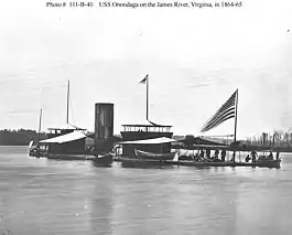 Вступивши в дію в березні 1864 року, «Онондага» була негайно призначена для дій у гирлі річки Джеймс. Ця річка з'єднувала Гемптон-Роудс з Річмондом, була ключовим пунктом для конфедератів. Утримуючи річку, їх броненосці забезпечували захист підступів до Річмонду з півдня, і одночасно, створювали постійну загрозу для комунікацій федеральної армії, що проходили через Гемптон-Роудс.
