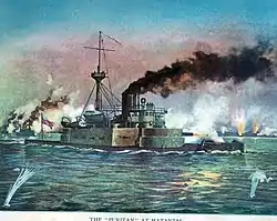 «Пуритан» активно застосовувався під час Іспано-американської війни. Отримавши призначення до участі у блокаді Куби у квітні 1898 року, корабель приєднався до New York та Cincinnati під час обстрілу Матансаса 27 квітня. Після зупинки у Кі-Вест на початку травня, монітор вирушив 20 травня аби приєднатися до з'єднання, яке формував контр-адмірал Вільям Т. Семпсон (William T. Sampson), яке врешті решт вирушило до Сантьяго. «Пуритан» приєднався 22 і Семпсон спрямував свої кораблі до Кей Франшес (Key Frances) у Каналі Ніколаса (Nicholas Channel) (протока поблизу Куби)з метою заблокувати іспанську ескадру у Сантьяго. Спроба прориву іспанської ескадри 3 червня завершилась практично повним її знищенням.