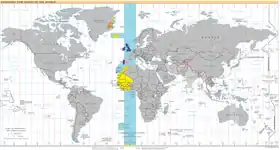 - Відносно київського часу мінус 2 години у протягом усього року в країнах Європи в зоні західноєвропейського часу (Велика Британія, Ірландія, Португалія); а також мінус 2 години від київського часу в країнах Африки в цілорічній зоні західноафриканського часу (від Марокко до Гани), а також Ісландії — у період дії стандартного часу в Україні. У період дії літнього часу — мінус три години.