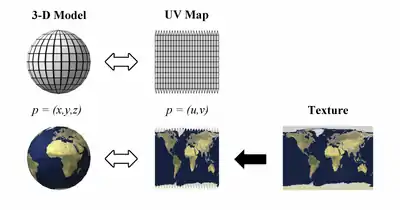 UV mapping (UV-розгортка) — відповідність між координатами на поверхні тривимірного об'єкту (X, Y, Z) і координатами на текстурі (U, V). Значення U і V зазвичай змінюються від 0 до 1. Розгортка може будуватися як вручну, так і автоматично.