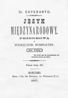 Оскільки Варшава на той час була частиною Російської імперії, то перше видання книги було надруковано російською мовою. Пізніше, протягом того ж року, видано примірники французькою, польською та німецькою мовами. Поняття «Unua Libro» вживають щодо будь-якої з цих версій і, за потреби, роблять уточнення, наприклад, «Польська Перша Книга» (Pola Unua Libro) тощо.