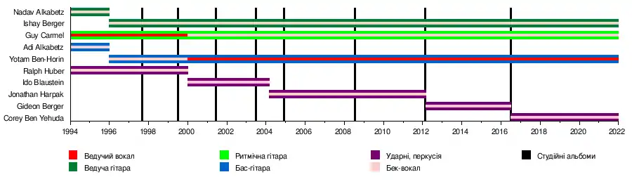 - Надав Алькабетц (Nadav Alkabetz) - ведуча гітара, бек-вокал (1994–1996)