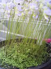 Невелика однорічна трав'яниста рослина, приблизно 12 см заввишки. Має розетку вузьких листків і жилаві стебла, що підтримують суцвіття квіток з двома губами, білих, блідо-фіолетових або іноді жовтих. Верхня губа невелика з двома або трьома часточками, а нижня губа має дві короткі часточки. Основа нижньої губи має жовту пляму різного розміру. Пастки, напівпрозорі, розвинені в коренях.