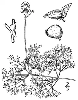 Однорічна чи багаторічна рослина. Квітки блідо-пурпурові з двома губами. Верхня губа має фіолетове пляма в центрі, а нижня губа має білу пляму з яскраво-жовтим центром. Квіти виростають приблизно до 1.3 см у довжину, розміщені на товстих квітконосах, які висуваються на декілька сантиметрів чи кілька дециметрів над водною лінією. Листки дрібно розділені. Вони розташовані в кільцях з 5–7 листків і зазвичай занурені. З кінчиків листків виходять маленькі яйцеподібні міхури. Насіння зріє в дрібних коробочках[2].