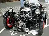 Мотоциклетні V-twin-и адаптувались для використання в триколісних автомобілях компанією Morgan протягом 1911...1939 років. В 2011 році компанією Morgan було представлено триколісній Morgan 3-Wheeler з V-twin двигуном потужністю 115 к.с. та приводом на заднє колесо. Низка автомобілів Morgan надихнула на створення трициклів компанією Triking, що використовують двигуни Moto Guzzi; а також Ace Cycle Car, що використовує двигуни Harley-Davidson; і JZR Trikes з двигунами від лінійки мотоциклів Honda CX.