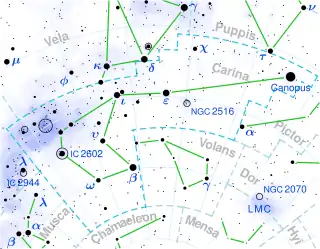 ![]() Location of V382 Carinae (circled) | |