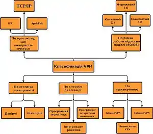 VPN (скорочення від англ. Virtual Private Network — віртуальна приватна мережа) — узагальнена назва технологій, які дозволяють створювати віртуальні захищені мережі поверх інших мереж із меншим рівнем довіри. VPN-тунель, який створюється між двома вузлами, дозволяє приєднаному пристрою чи користувачу бути повноцінним учасником віддаленої мережі і користуватись її сервісами — внутрішніми сайтами, базами, принтерами, політиками виходу в Інтернет. Безпека передавання інформації через загальнодоступні мережі реалізована за допомогою шифрування, внаслідок чого створюється закритий для сторонніх канал обміну інформацією. Технологія VPN дозволяє об'єднати декілька географічно віддалених мереж (або окремих клієнтів) в єдину мережу з використанням для зв'язку між ними непідконтрольних каналів. Багато провайдерів пропонують свої послуги як з організації VPN-мереж для бізнес-клієнтів, так і для виходу в мережу Інтернет. VPN є клієнт-серверною технологією.