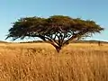 Акація зонтична — є одним із найбільш примітних символів африканських саван. Листяне дерево до 15 м, що скидає листя в посушливу пору року. Гілля усіяне двома типами колючок — парними, довгими і прямими; та одиничними, короткими і гачкоподібними. Не зважаючи на такий захист — листя слугує їжею для жираф. Листя двічіперисте складається з численних дрібних листочків. Волоті з дрібних кулястих головок крихітних бежевих квіток з'являються на акації влітку і з часом перетворюються на скручені боби.