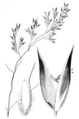 Стебла прямі, 15–20 см завдовжки. Лігули 0.8–3 мм довжиною. Листові пластини 1–7 см завдовжки; ширина 1–5 мм, поверхня гола або волосиста. Суцвіття — волоть, відкрита, яйцеподібна, довжиною 3–12 см. Гілочки суцвіття гладкі або шершаві. Колосочки одиночні. Родючі колосочки з квітоніжками. Колосочки довгасті, стиснуті з боків, довжиною 4–6 мм, розпадаються при зрілості. Колоскові луски стійкі, подібні, перевищують верхівки квіточок, блискучі. Нижня колоскова луска ланцетна, 4–6 мм завдовжки, 1-кілева, 3-жильна, верхівка гостра. Верхня колоскова луска яйцеподібна довжиною 4–6 мм, 1-кілева, 3-жильна, верхівка гостра. Родюча лема яйцеподібна, довжиною 1.8–2.5 мм, блискуча без кіля; 5-жильна, верхівка зубчаста. Пиляків 3; 0.4–0.8 мм довжиною.