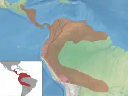 Країни поширення: Беліз, Болівія, Бразилія, Колумбія, Коста-Рика, Еквадор, Французька Гвіана, Гватемала, Гаяна, Гондурас, Мексика, Нікарагуа, Перу, Суринам, Тринідад і Тобаго, Венесуела. Цей кажан зазвичай знаходиться в низовині, вічнозелених лісах, а іноді й у хмарних або листяних лісах або болотистій місцевості.