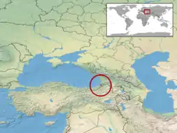 Вид поширений у долині річки Чорох на півночі Туреччини у провінції Артвін. Також може зустрічатися у провінції Ерзурум та у сусідніх районах Грузії в долині річки Кура.