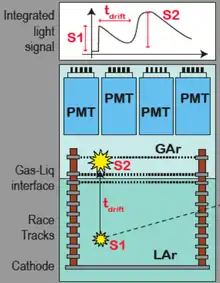 Експеримент WARP спрямований на відкриття WIMP через одночасне виявлення сцинтиляційного світла і електронів іонізації, виробленого WIMP, взаємодіючих в обсязі 100 літрів рідкого аргону. Через невеликий енергетичний поріг (близько 19 еВ) рідкий аргон був відомий довгий час як відмінний сцинтилятор (Ar2 іонізується в типовій довжині хвилі 128 нм). Для збору електронів, що утворились при взаємодії, до газу прикладають поле силою 1КеВ/см. Електрони потім екстрагуються і переходять з газової фази в область де вони лінійно помножуються, за допомогою відповідних сіток з напругою. Цей сигнал зміщений відносно взаємодії, на час який потрібно електронам, щоб пройти рідку фазу аргону. У верхній частині 2 фотопомножувачі використовуються для запису як первинного сцинтиляційного світла (первинний сигнал) і підсиленого світла (вторинний сигнал). Загальне охоплення ФЕУ становить близько 10 % від загальної поверхні; довжина Стосового зсуву, в основному полімерного сцинтилятора — (випромінювання навколо 438 нм), передбачено, як на ФЕУ і внутрішніх стінках детектора для того, щоб зсунути довжину хвилі сцинтиляційного світла Ar в область чутливості ФЕУ. Причина того, щоб спостерігати спалахи світла(S1) і сигнал іонізації (S2) одночасно, в тому що, вимірювання проводиться в WIMP розсіюванням за участі ядер аргону, тоді співставлення S2 / S1 охарактеризує ядерне розсіювання відносно тла індукованого гамма-променів і електронів.