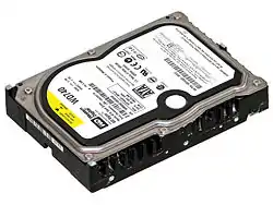 - Third to the former Western Digital logo, as seen on the label of the hard disk drive.