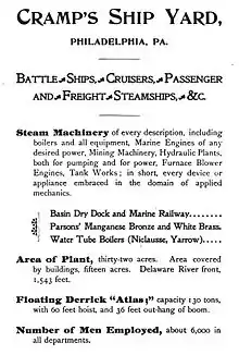 Рекламний лист компанії William Cramp & Sons, 1899 рік