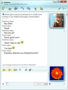 ![]() Вікно розмови у Windows Live Messenger 8.5 | |