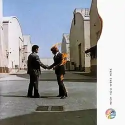 Для передачі змісту пісень «Welcome to the Machine» і «Have a Cigar» дизайнер Джордж Гарді розробив стикер із зображенням двох механічних рук, що злилися в рукостисканні на тлі чотирьох стихій: вогню, води, землі та повітря. Стикер наклеювали на чорну оболонку, і вже під нею містилася сама обкладинка, в якій лежала платівка[28]. На головній обкладинці було зображено бізнесмена, що потискує руку свого палаючого двійника (або іншого бізнесмена). Ця сцена на думку авторів була повинна символізувати ту обставину, що люди, через острах «згоріти», часто намагаються приховати свої справжні почуття. Поняття «згоріти» на сленгу музичного бізнесу часто вживають до виконавців, яких обдурили з виплатою авторських гонорарів. Для втілення цієї сцени були запрошені два професійних каскадери: Ронні Ронделл та Денні Роджерс, один з яких одягнув піджак з штанами поверх вогнетривкого костюма. Його голова була захищена спеціальною відлогою, а підпалювали надіту зверху легкозаймисту перуку. Знімок був зроблений на території кіностудії Warner Brothers у Лос-Анджелесі. При постановці вітер спочатку дув не в тому напрямку і язики полум'я потрапляли прямо в обличчя Ронделла, опікаючи вуса каскадера, тоді було прийнято рішення поміняти бізнесменів місцями і зробити знімок так, а пізніше фото дзеркально обернули[29].