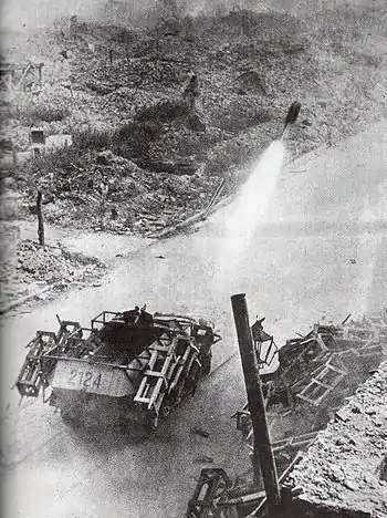 ![]() Пуск реактивного снаряда з Wurfrahmen 40 в ході подавлення варшавського повстання | |