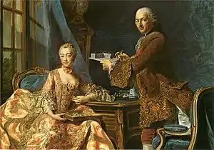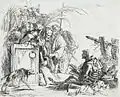 Худ. Жак Дюплессі. "Театральна сцена з картиною «Сатир третирує богиню Діану та її німф», живопис доби рококо.