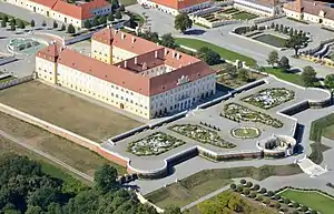 Замок Оберзібенбрунн, Австрія, архітектор Йоган Лукас фон Гілдебрандт (1668—1745), парковий павільйон, худ. Йонас Дрентвет, гротески.