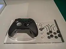 Альтернативний геймпад Xbox Elite має змінні кнопки, стіки й спускові гачки різної форми, що постачаються в комплекті. Власники можуть на свій розсуд встановити їх для комфортнішого користування. Крім того, геймпад має 4 додаткові важелі знизу (можуть бути зняті) у формі пелюсток, які дають змогу виконувати додаткові дії в іграх, не відриваючи пальці від інших елементів керування. Конкретні дії програмуються для кожного з цих важелів. Додатково на спускові гачки Xbox Elite можуть бути встановлені обмежувачі їх руху. Це дозволяє, наприклад, коротшим натисканням зробити у грі постріл, заощадивши тим самим частки секунди. Матеріал геймпада більш зносостійкий, ніж в оригінала, та міцніше тримається в руках. Спеціальний програмний додаток відкриває доступ до програмування функцій всіх елементів керування Xbox Elite та дозволяє зберігати кілька профілів їх налаштувань і швидко змінювати два обраних профілі спеціальним перемикачем. Крім того, налаштовується рівень чутливості стіків. Xbox Elite входить до комплекту Xbox One Elite, що надійшов у продаж 5 листопада 2015 року, а також продається окремо.[46]