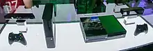 ![]() ![]() Зверху: Оригінальна консоль Xbox One, контролер і Kinect, чорного кольору Знизу: Xbox One S з контролером, білого кольору | |