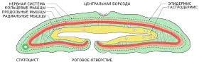 Червоподібне тіло завдовжки до 1 см, зрідка може сягати до 4 см. Нервова система складається з нервової мережі, без мозку або гангліїв.