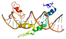 Кодований геном білок за функціями належить до репресорів, активаторів, фосфопротеїнів. Задіяний у таких біологічних процесах, як транскрипція, регуляція транскрипції, пошкодження ДНК, репарація ДНК, рекомбінація ДНК, диференціація клітин, сперматогенез. Білок має сайт для зв'язування з іонами металів, іоном цинку, ДНК. Локалізований у ядрі.
