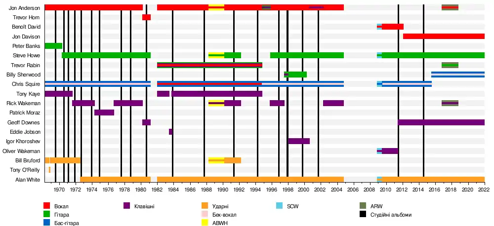 Кріс Сквайр Стів Гау Рік Вейкмен Алан Вайт Джон Андерсон |