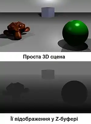 При створенні (візуалізації) 3D-об'єкту, його глибина генерується на осі Z-координат і зберігається у Z-буфері. Сам буфер, зазвичай, являє собою двомірний масив X-Y координат із одним елементом (глибиною) для кожного екранного пікселя. Коли інший об'єкт сцени повинен бути відображений у цьому пікселі зараз, тоді порівнюється дві глибини та перекривається поточний піксель, якщо об'єкт знаходиться ближче до спостерігача. Обрана глибина зберігається в Z-буфері і замінює попередню. Зрештою, Z-буфер дозволяє правильно відтворювати звичне для нас сприйняття глибини: ближчий до нас об'єкт перекриває наступні, що розташовуються за ним — невидимих поверхонь.